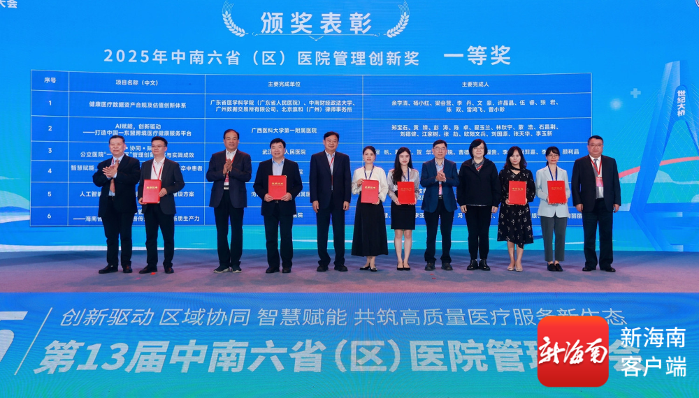 大会对2025年中南六省(区)医院管理创新奖和医院管理优秀论文奖获奖代表进行了表彰。本次大会共收到医院管理创新奖项目229个、医院管理论文1259篇,最终评选出“医院管理创新奖”一等奖6项、二等奖8项、三等奖12项,“医院管理优秀论文奖”一等奖12篇、二等奖18篇、三等奖30篇,以表彰行业内的创新实践与学术成果。