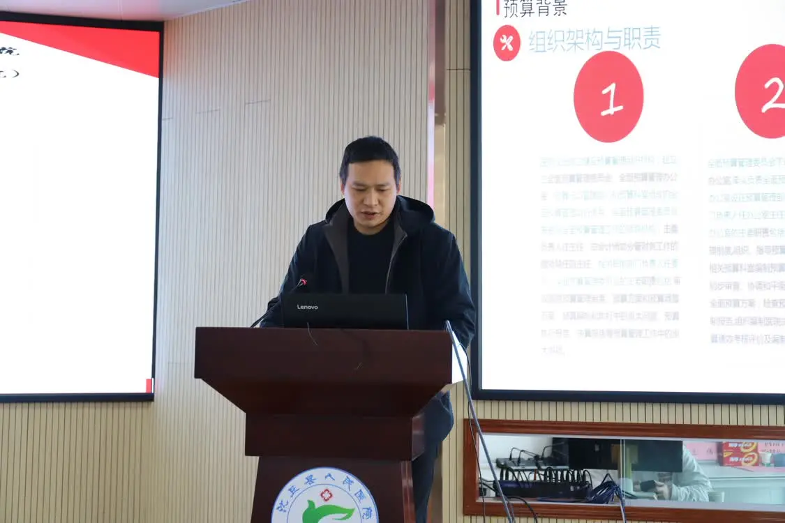 在沈丘县人民医院党委书记欧阳剑作领导致辞后,沈丘县人民医院总会计师王莉系统汇报了该院在预算成本系统建设与应用方面的目标、成果与数据分析。