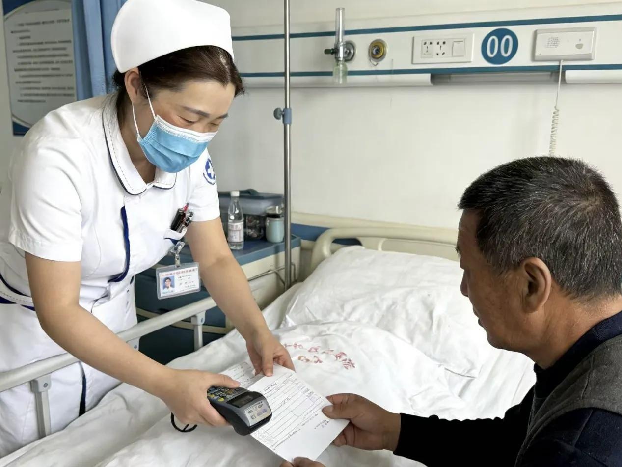 如今,在区人民医院、区中医院的病房里,护士推着小推车,不仅送药打针,还能办理出院。费用结算、医保报销、票据打印可全部在病床边“一键”搞定,剩余的押金“原路返回”,这感觉就像在酒店“一键退房”一样丝滑。患者们不禁感叹:“这哪里是住院,这分明是住进了‘VIP’包间!”